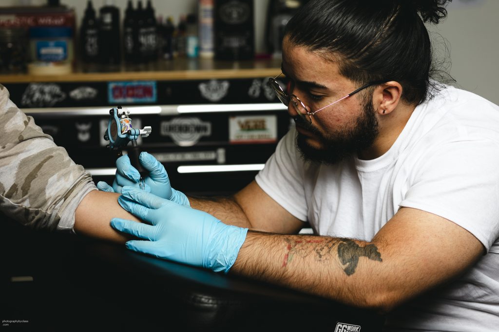 Raymond AKA Ray, a self taught tattoo artist that has been tattooing now for 9 years. He specializes in line work, small detailed tattoos and humor.